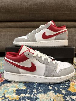 Size 4.5Y/6W - Air Jordan 1 Low SE GS “Light Smoke Grey Gym Red”$80Denham Springs, LA