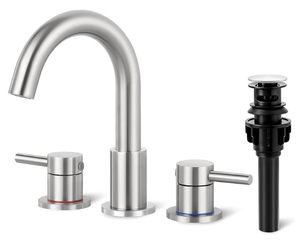 Bathroom Faucet 3 Hole, Brushed Nickel Bathroom Sink Faucet with Pop Up Drain, 8 inch Widespread Bathroom Faucet with 360° Swivel Spout, 2 Handle Vani$55Downey, CA
