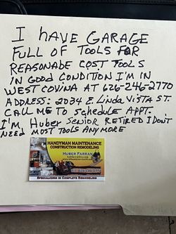 I Have Garage Full Of Tools For Sale Due To Retirement$25West Covina, CA