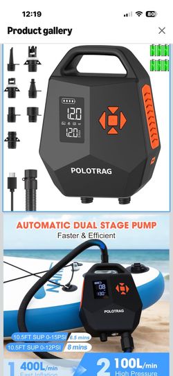 Electric Paddle Board Pump Rechargeable, 20PSI SUP Pump 12000mAh Paddleboard Pump with Inflation & Deflation, Auto-Off, Battery Powered Portable Air P$65Las Vegas, NV