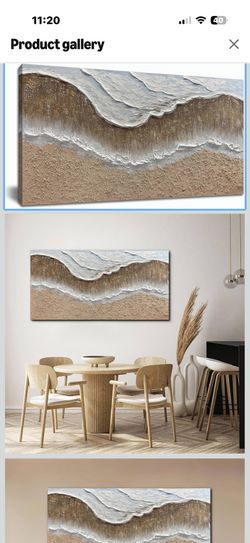 Large Coastal Canvas Wall Art for Living Room 20x40 Inch Hand Painted White Ocean Textured Seascape Oil Painting Beach Artwork for Bedroom Office Home$30Las Vegas, NV