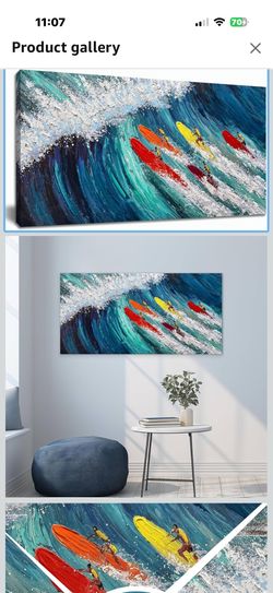 Coastal Canvas Wall Art for Living Room Large Blue Beach Hand Painted Oil Painting Ocean Wave Wall Art Colorful Surfer Artwork Textured Seascape Wall $30Las Vegas, NV