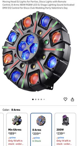 Moving Head DJ Lights for Parties, Disco Lights with Remote Control, 8-Arms 180W RGBW LED DJ Stage Lighting Sound Activated DMX 512 Control for Disco $150Menifee, CA