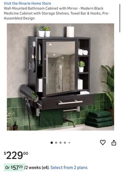 Wall-Mounted Bathroom Cabinet with Mirror - Modern Black Medicine Cabinet with Storage Shelves, Towel Bar & Hooks, Pre-Assembled Design$200Menifee, CA