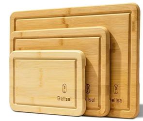 Kitchen Bamboo Cutting Board Set of Three Style: #1 Dimensions: Large: approx. 15 inches x 9.8 inches Medium: approx. 11.8 inches x 7.8 inches Small: $15Helotes, TX