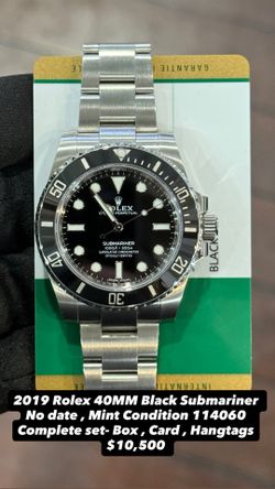 Rolex Submariner 40MM Black Dial No Date, 2019 Mint Condition 114060, Complete Set - Card , Hangtags$10,500Sunny Isles Beach, FL