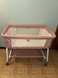Baby Crib with Storage Basket and Wheels, Easy Fold Side Sleeper, Adjustable Height, Portable Newborn Bassinet (P$50Chicago, IL