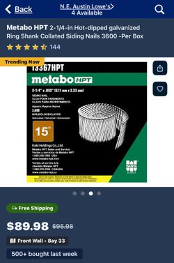 Metabo HPT 2-1/4” 15° Siding/Fencing Nails$60Austin, TX