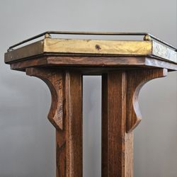 Gothic ARTS & CRAFTS 36" X 14" Octagon Solid Oak Bust Plant Stand Brass Fence$135Parma, OH
