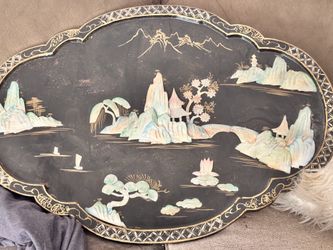 1940s Asian Chinoiserie Hand Crafted Mother of Pearl Black Lacquered and Painted Wall Art$75Camden, SC