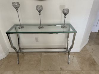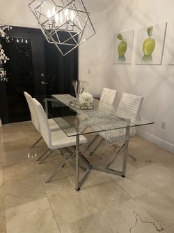 Chrome Metal and Glass Dining Table Set with 4 Leather Dining Chairs$650Miami, FL
