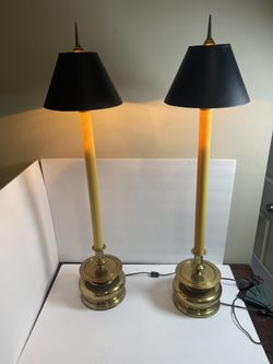 1970s Chapman attributed tall brass candlestick table lamps with black shades.$1,200Phoenix, AZ