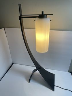 Hubbardton Forge Stasis table lamp in a black finish with an opal glass shade.$900Phoenix, AZ