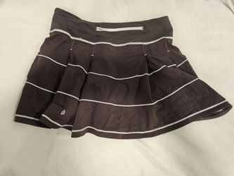 Lululemon Pace Rival skirt in a dark brown color with white pinstripes. $35Suffolk, VA