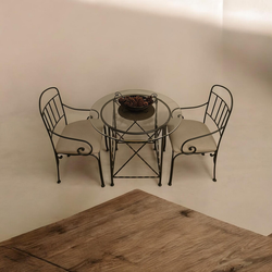 Breakfast nook iron table with glass top and two chairs$350Collegedale, TN
