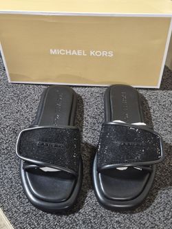 Brand New In Box Michael Kors Black Faux Leather Slides$55Victorville, CA