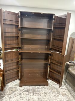 75" Kitchen and Dining Room Cabinet with 4 Doors, Adjustable Shelves and 12 Tiers, Rustic Style Tall Cabinet for Freestanding Storage in Wood (Brown, $280Jonesboro, GA