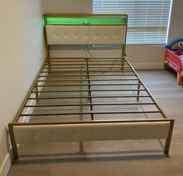 Assembled Queen Bed Frame with Storage Headboard & Footboard Upholstered Platform Bed with LED Lights USB Ports & Outlets No Box Spring Needed,White$180Richmond, TX