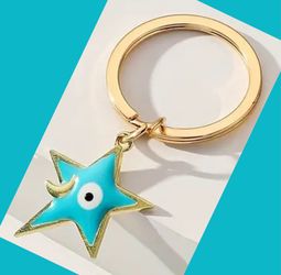 Alloy Aqua Blue Star with Eye on Gold Ring Key Chain$1Chicago, IL