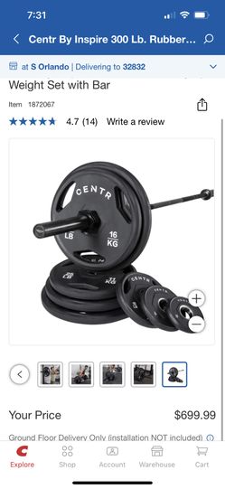 Centr by Inspire 300 lb. 255 Lbs Rubber Olympic Weight Set 45 lbs Olympic Bar Clips 449$ Firm New$449Orlando, FL