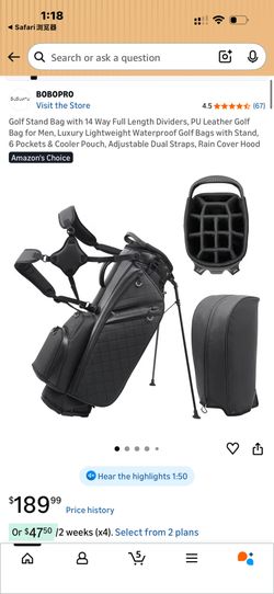 BoBO Pro Golf Stand Bag with 14 Way Full Length Dividers, PU Leather Golf Bag for Men, Luxury Lightweight W$95Santa Ana, CA