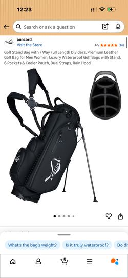 Golf Stand Bag with 7 Way Full Length Dividers, Premium Leather Golf Bag for Men Women, Luxury Waterproof Golf Bags with Stand, 6 Pockets & Cooler Pou$65Santa Ana, CA
