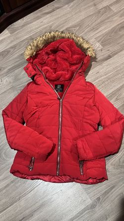 NY & Co. red puffer jacket with a faux fur-trimmed hood.$10Las Vegas, NV