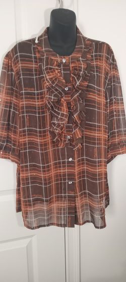 Women's Apple Bottom Blouse Brown With Orange And Beige Lines With Small Round , Shine Stones$32Orlando, FL