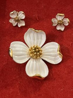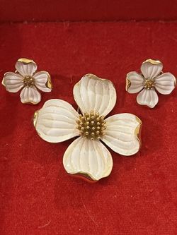 Vintage Trifari Signed Dogwood Flower Brooch (2 Inches) With Matching Clip-on Earrings$47Centreville, VA
