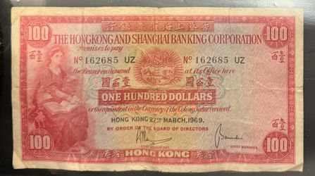 Rare 1969$ 100 Hong Kong Note. HSBC$250New York, NY