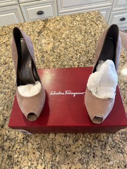 Brown Salvatore Ferragamo Biscue Nabuck Calf high heels$400Los Angeles, CA