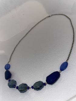 Navy Blue And Blue Tinted Beaded Plastic Necklace On Silver Chain Vintage$15Severn, MD