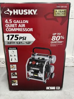 HUSKY 4.5 Gal. 175 PSI Portable Electric Oil-Free Quiet Twin Stack Jobsite Air Compressor w/Rubber Wheels and 2-Quick Couplers$200Mission Viejo, CA