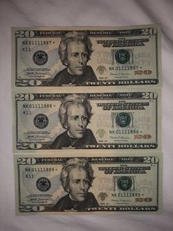 $20 Starred Notes 3 In A Row RARE LOW SERIAL NUMBERS$215Norfolk, VA