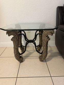 Elegant Glass Top Coffee Table – Ornate Wood & Metal Base$100Miami, FL