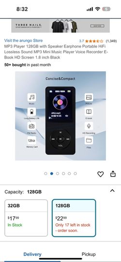 MP3 Player 128GB with Speaker Earphone Portable HiFi Lossless Sound MP3 Mini Music Player Voice Recorder E-Book HD Screen 1.8 inch Black$15Alta Loma, CA