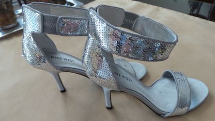 Nine West High Heel Sandal size 7 Fabric & Sequin (Silver color)$38Brooksville, FL