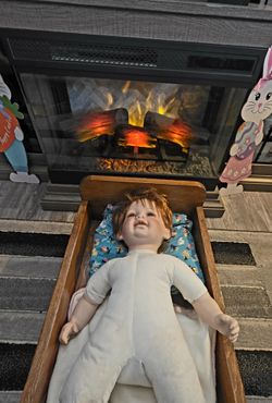 Limited Edition Royal Cathay Porcelain Baby Doll in Handmade Wood Rocking Cradle$65Mount Healthy, OH