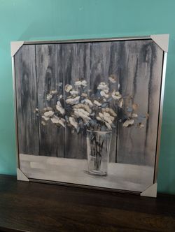 Modern Hand painted Flower Art Work - 40x40 Canvas With Silver Frame $149Asheville, NC