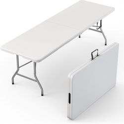 8 Feet Foldable Table with Built in Handle & Steel Legs | Heavy Duty Portable | Perfect for Party, Dining, Wedding, Events, Picnic Indoor, Outdoor, Ca$60Fontana, CA