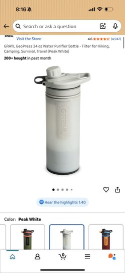 GRAYL GeoPress 24 oz Water Purifier Bottle - Filter for Hiking, Camping, Survival, Travel (Peak White)$40New York, New York