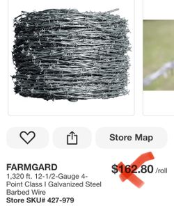 WFARMGARD 1,320 ft. 12-1/2-Gauge 4-Point Class I Galvanized Steel Barbed Wire$120Phoenix, AZ