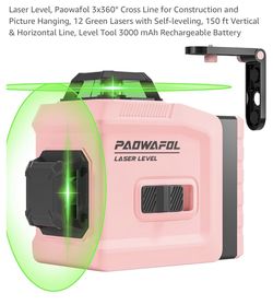 Laser Level, Paowafol 3x360° Cross Line for Construction and Picture Hanging, 12 Green Lasers, 150Ft$40Houston, TX