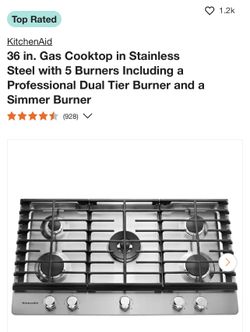 Gas Cooktop in Stainless Steel with 5 Burners Including a Professional Dual Tier Burner and a Simmer Burner 36”$900Houston, TX