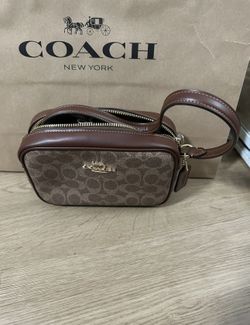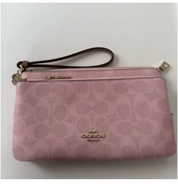 NWT Coach Powder Pink Double Zip Wristlet In Signature Canvas With Charms 🌸$120Lynwood, CA