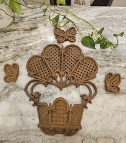 Mid-Century Modern Syroco Wall Pocket Basket With Matching Butterflies 🦋 🦋🦋$39Splendora, TX