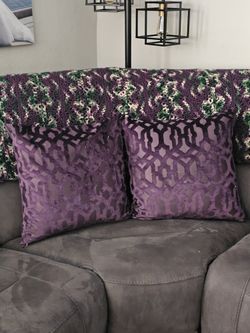 Two decorative velvet-design Pillows filled with feathers. Purple 💜💜 19"×19"$20Splendora, TX