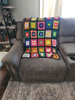 Vintage Granny Square Afghan Sofa LapThrow Black and Multicolored 36 x 48$15Splendora, TX