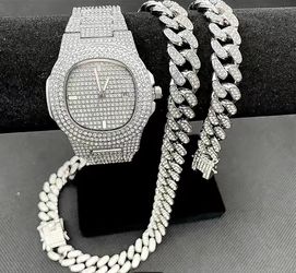 Rhinestone Watch And Cuban Necklace And Bracelet$44Carol Stream, IL