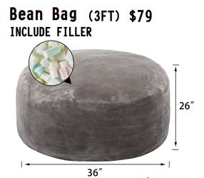 BRAND new sealed beanbag 3Ft Grey beanbag lazy sofa beanbag chair high-rebound memory foam furniture flannel cover removable$50Puyallup, WA